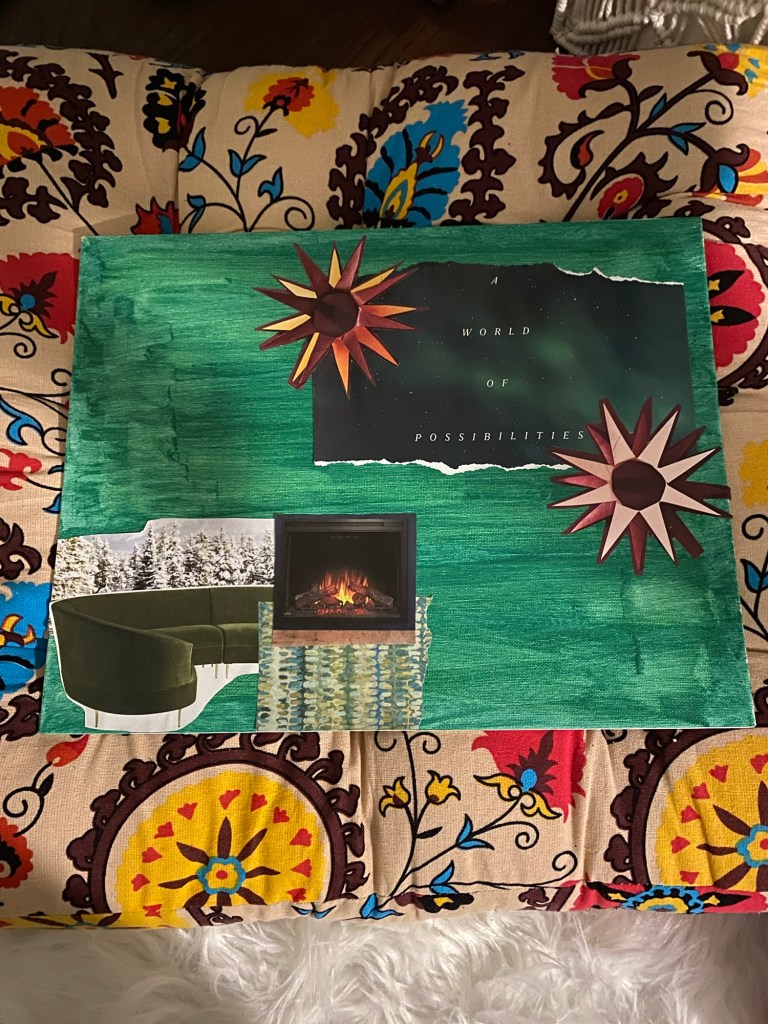 My second board has a lot more going on. This year feels transformative in some ways – as I continue to deal with, process, and make meaning of the last year and heal.